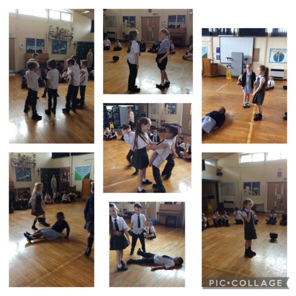 We then learnt a verse using lines from the play, we added actions and practiced singing together.