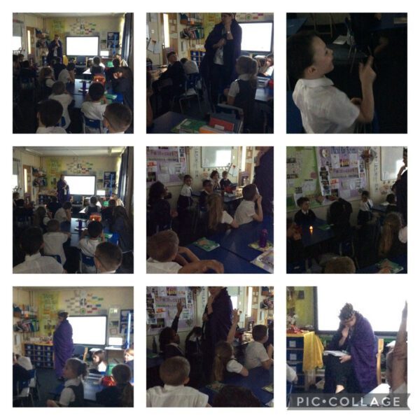 Sue from Northwest drama, Children’s Shakespeare festival visited year 3, she introduced us to a character from the play, to whom we could speak and interact with. He set the scene in Scotland and warned of the dangers especially with the Vikings invading.